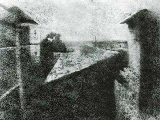 Первыми снимками на этой камере были снимки окна квартиры изобретателя и он сумел зафиксировать их на бумаге. Через год Карл Гаусс создал первый объектив. Около 1820 года Ньепс обнаружил, что битум — вид асфальта — чувствителен к свету. Соединив это светочувствительное вещество с камерой-обскурой, он успешно изготовил несколько первых в мире фотографий (одна из них, сделанная в 1826 году, сохранилась до наших дней). По этой причине некоторые считают, что изобретателем фотографии нужно считать Ньепса.