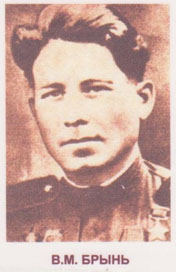 Брынь Василий Мартынович был лучшим трактористом колхоза имени Сталина. 26 октября 1943 года был удостоен звания Героя Советского Союза за мужество, проявленное при форсирования Днепра. В ночь с 24 на 25 сентября 1943 года совершил 12 рейсов через Днепр и перевез более 70 наших бойцов. С наступлением рассвета Брынь под огнем врага рискуя жизнью, переправил на пароме три 45-миллиметровые пушки с боеприпасами. В 7 часов утра противник предпринял контратаку против наших высадившихся подразделений. Брынь вместе со взводом саперов отбивал атаки. Враг вынужден был отступить. |